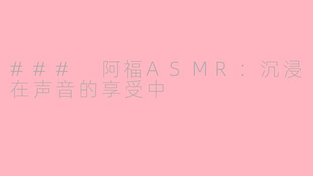 在现代快节奏的生活中,越来越多人开始寻求放松和解压的方式。其中,ASMR(自发性知觉经络反应)成为了许多人心目中的首选。而其中一位备受欢迎的ASMR创作者——阿福,以其独特的声音和细腻的表达,赢得了大量粉丝的喜爱。