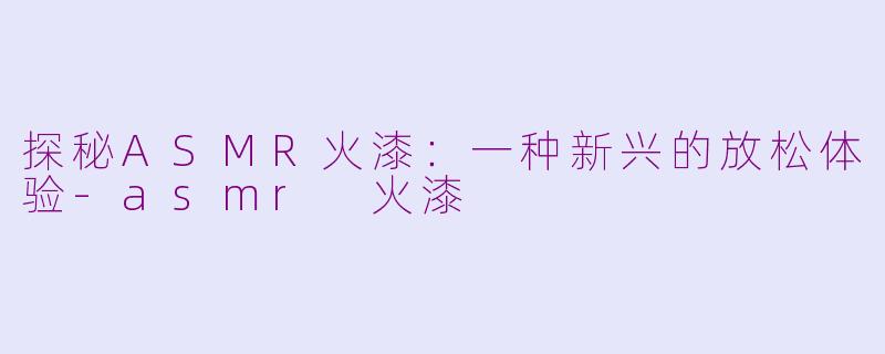 探索“ASMR骂到”的奇妙世界:声音的反向疗愈