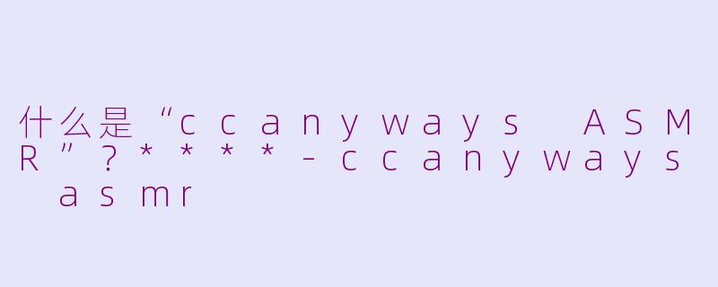 “ccanyways ASMR”是一个专注于制作ASMR(自发性知觉经络反应)视频的频道,通过各种声音和视觉刺激,如轻声细语、敲击声和触碰声,帮助观众放松和减压。这些视频旨在营造舒适、宁静的氛围,帮助人们入睡或缓解焦虑。**
