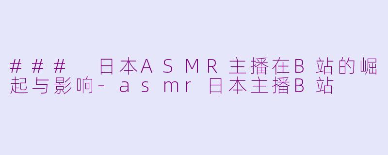 近年来,ASMR(自主感官经络反应)在全球范围内获得了广泛关注,尤其是在中国的B站(哔哩哔哩)平台上,越来越多的日本ASMR主播纷纷亮相,吸引着众多粉丝的喜爱。日本以其独特的文化和细腻的声音表现,给许多ASMR爱好者带来了全新的听觉享受。