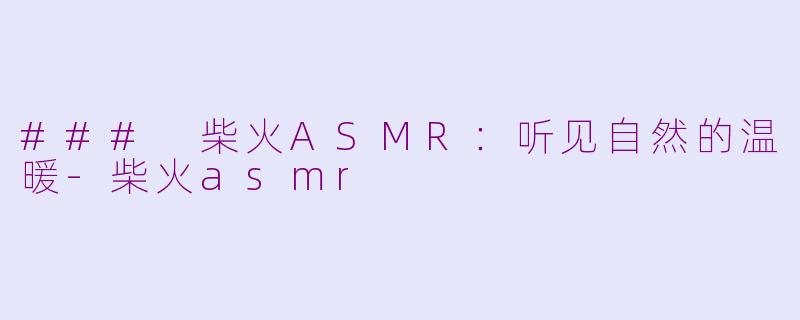 ### 柴火ASMR:听见自然的温暖