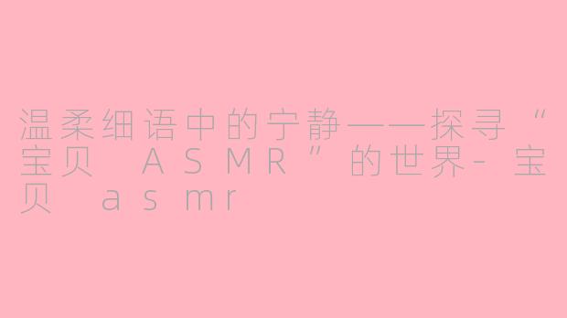 温柔细语中的宁静——探寻“宝贝 ASMR”的世界