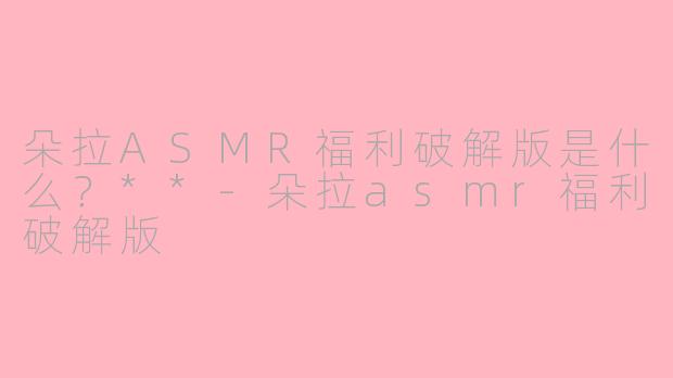 朵拉ASMR福利破解版是一款提供ASMR(自发性知觉经络反应)音频内容的应用或软件,通常会包含一些独特的声效和放松体验,旨在帮助用户减压和放松。破解版则指的是该软件的付费内容通过非官方渠道获得的免费版本,可能涉及版权问题,用户在使用时需注意相关法律风险。