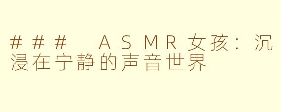 ASMR(自主感官经络反应)近几年来在网络上迅速走红,特别是在年轻人中间,成为了一种新的放松与减压方式。而“ASMR崎”作为ASMR节目的一种独特表现形式,凭借其细腻温柔的声音,深受听众喜爱。