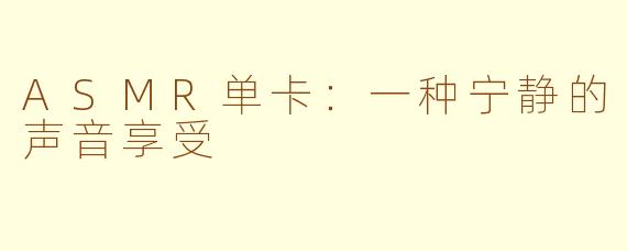 随着数字技术的发展,ASMR单卡不仅可以在各种平台上轻松获取,还可以根据个人喜好进行挑选。无论是在忙碌的工作之余,还是在夜深人静时,它都能为我们带来片刻的宁静。让我们在忙碌的生活中,偶尔停下脚步,倾听那份属于自己的声音之旅吧。