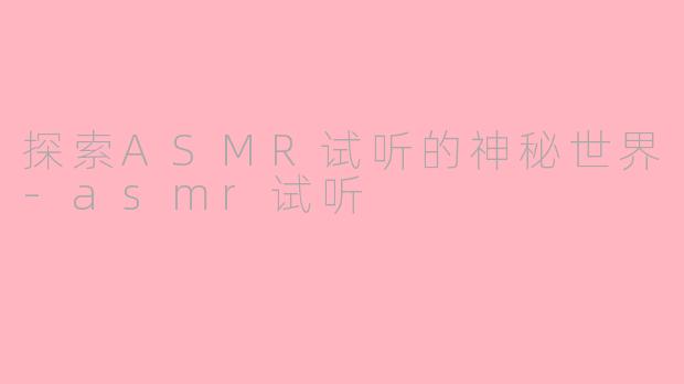 近年来,ASMR(自发性知觉经络反应)现象逐渐走入大众视野,成为人们放松和减压的新方式。ASMR试听结合了各种声音,如轻声耳语、轻敲声、刷刷声等,能够刺激大脑产生愉悦感和放松感。许多人在工作压力大或睡眠不佳时,会选择通过ASMR视频或音频来帮助自己入眠。