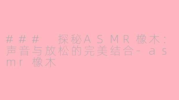 此外,ASMR橡木不仅仅是一种声音的享受,它还可以结合视觉元素,创造出更加完美的放松体验。比如,观看ASMR制作者在橡木桌上进行细致的木工制作,除了能听到悦耳的声响,还能够感受到制作过程中的美感,带给人们全方位的感官享受。
