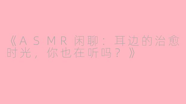 《ASMR闲聊:耳边的治愈时光,你也在听吗?》