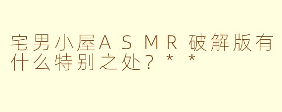 宅男小屋ASMR破解版通常会提供解锁所有内容的功能,比如额外的场景和角色,让玩家体验更丰富的ASMR效果。不过,使用破解版可能涉及版权问题,建议支持正版以获得更好的体验和更新。