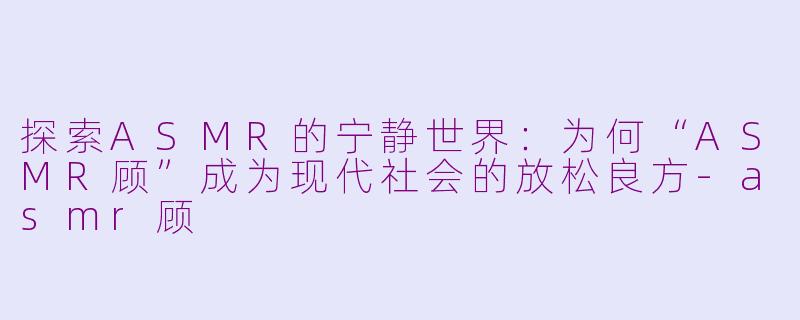 近年来,ASMR(自主性感知经络反应)逐渐走入大众视野,成为许多人寻求放松和舒缓压力的新方式。ASMR顾,作为这一现象的发源地之一,吸引了无数追随者。它通过细腻的声音、温柔的谈话以及生动的场景,帮助人们沉浸在一种宁静的氛围中,进而降低焦虑、改善睡眠。