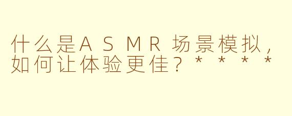 ASMR场景模拟是指通过声音、环境和情境的设计,创造出一种能够引发自发知觉经络反应(ASMR)的氛围,例如轻声耳语、物品的细微声响等。为了提升体验,可以选择舒适的环境,使用高质量的麦克风录制声音,并结合柔和的灯光和恰当的背景音乐,让听者能够更深层次地放松和享受这种愉悦的感觉。**