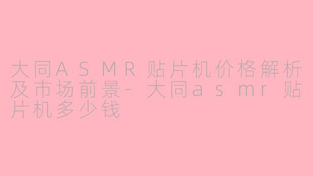大同ASMR贴片机价格解析及市场前景