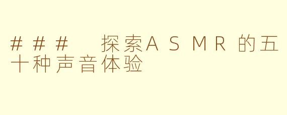 在当今快节奏的生活中,ASMR(自主感觉经络反应)已经成为许多人放松和减压的一种新的方式。ASMR的魅力在于其独特的声音体验,让人们在听觉上产生愉悦和舒适感。今天,我们将探索五十种不同的ASMR声音体验,帮助你找到最适合自己的放松方式。