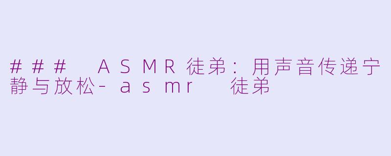 在现代快节奏的生活中,许多人开始寻求放松与解压的方法,而ASMR(自主感官经络反应)便应运而生,成为了新的热门趋势。作为一名ASMR徒弟,我深刻体会到了声音艺术的魅力。通过轻柔的耳语、细腻的敲击声和各种日常物品的音效,我沉浸在这份独特的体验中,感受到前所未有的宁静。