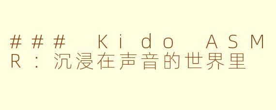 ### Kido ASMR:沉浸在声音的世界里