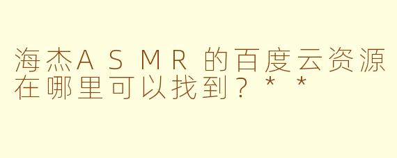 您可以在百度云搜索“海杰 ASMR”,然后查看相关的分享链接,或者加入一些专门的ASMR讨论群组,可能会有其他网友分享资源。不过,请注意遵循版权相关的规定。