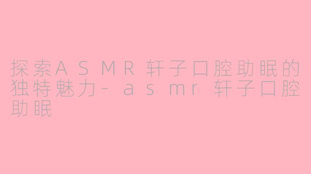 探索ASMR轩子口腔助眠的独特魅力