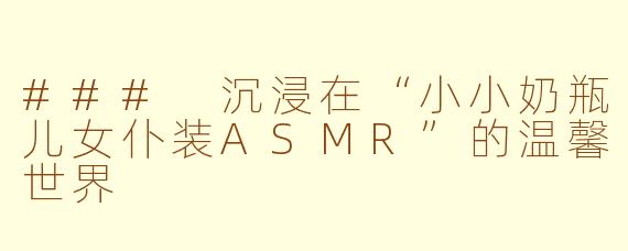 在当今ASMR(自发性感知经络反应)视频层出不穷的时代,“小小奶瓶儿女仆装ASMR”以其独特的主题和温馨的氛围吸引了众多观众。视频中的女仆装造型,以其可爱和温暖的形象,让人倍感亲切,仿佛回到了无忧无虑的童年时光。