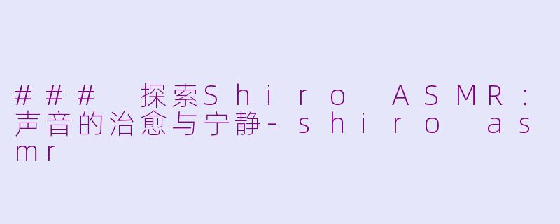 在当今快节奏的生活中,我们常常感受到压力与焦虑,而ASMR(自主感觉经络反应)作为一种新兴的放松方式,正受到越来越多人的欢迎。在众多的ASMR创作者中,Shiro以其独特的声音和放松的氛围脱颖而出,吸引了大量粉丝。