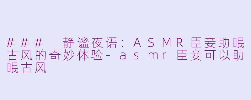 ### 静谧夜语:ASMR臣妾助眠古风的奇妙体验