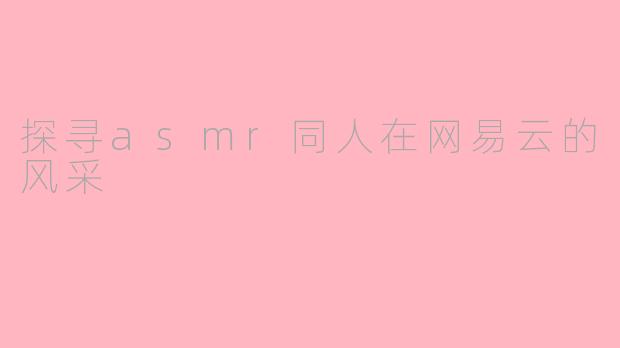 在这个正在崛起的asmr同人领域,网易云为创作者们提供了一个交流、学习和成长的平台,让更多人了解并喜爱asmr音频,为asmr同人的进一步发展注入了新的活力。愿asmr同人在网易云绽放出更加绚丽的风采!