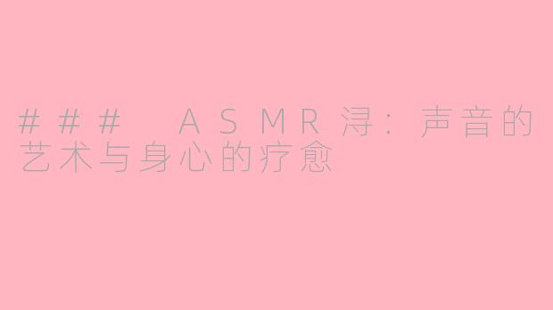 在如今快节奏的生活中,越来越多的人开始追寻一种放松和舒缓压力的方法,而ASMR(自发性知觉经络反应)便成为了热门的选择。在这个领域中,“ASMR浔”作为一个独特的声音频道,凭借其独特的声音艺术,吸引了众多听众。
