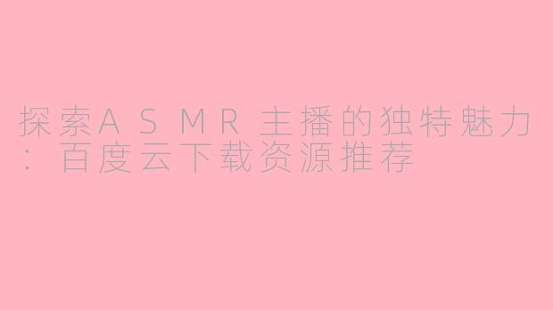 在下载资源时,建议关注一些知名的ASMR主播,他们的作品通常质量更高,内容更丰富。此外,还可以加入一些ASMR相关的社区,与朋友们分享资源,交流体验。总之,ASMR主播的世界充满新奇与放松,百度云下载将助你轻松进入这个迷人的境地。