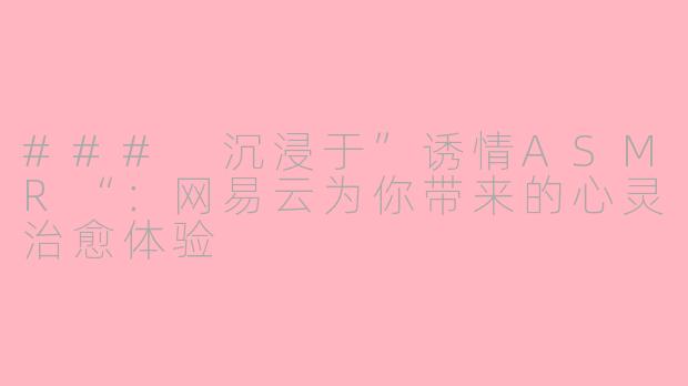 在现代社会的快节奏生活中,很多人都面临着压力与焦虑。为了寻找内心的宁静,”诱情ASMR“成为了许多人放松心情的绝佳选择。网易云音乐作为一个深受欢迎的音乐平台,已经将这种独特的声音体验带给了广大用户。