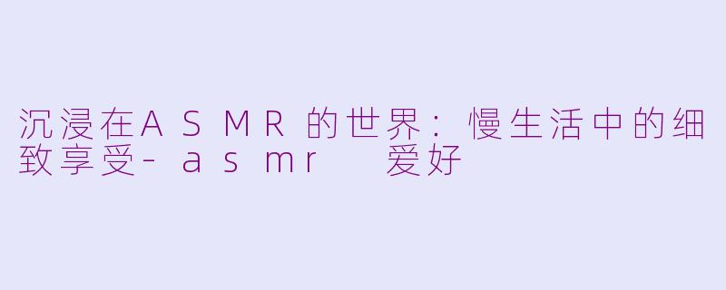 随着快节奏的生活方式,越来越多的人开始寻求放松和缓解压力的方法,而ASMR(自发性知觉经络反应)正好满足了这种需求。ASMR是一种通过声音或视觉刺激引起的舒适体验,通常伴随着轻微的愉悦和放松感。许多爱好者会通过观看ASMR视频、听耳语、轻声细语或者自然声音,来达到放松身心的效果。