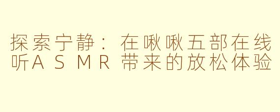 在现代快节奏的生活中,许多人都在寻找放松和减压的途径。ASMR(自发性知觉经络反应)作为一种新兴的放松方式,受到了越来越多人的喜爱。而”啾啾五部“作为一个专注于ASMR内容的平台,为爱好者提供了丰富的在线听觉享受。