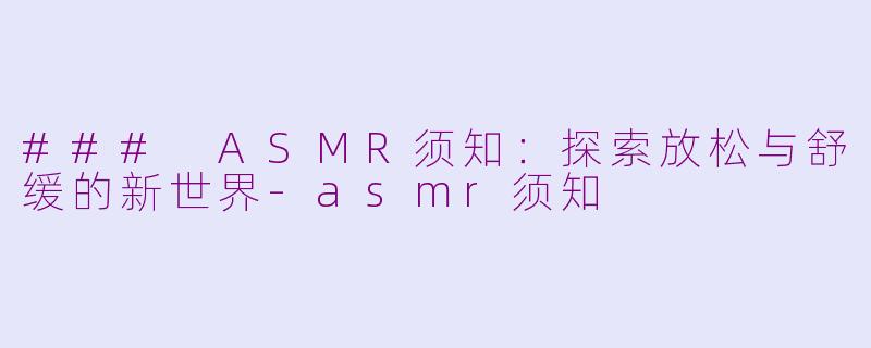 总之,ASMR为我们提供了一种独特的放松方式。通过了解这些基本注意事项,您可以更好地享受这一新兴的感官体验,让生活更加轻松愉悦。