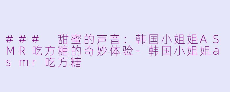在近年来的网络文化中,ASMR(自发性知觉经络反应)逐渐成为一种热门现象,吸引了大量观众的关注。这种独特的声音体验,让人们在日常生活中找到了一丝宁静和放松。最近,一位韩国小姐姐因其独特的方糖ASMR视频而走红,令人耳目一新。