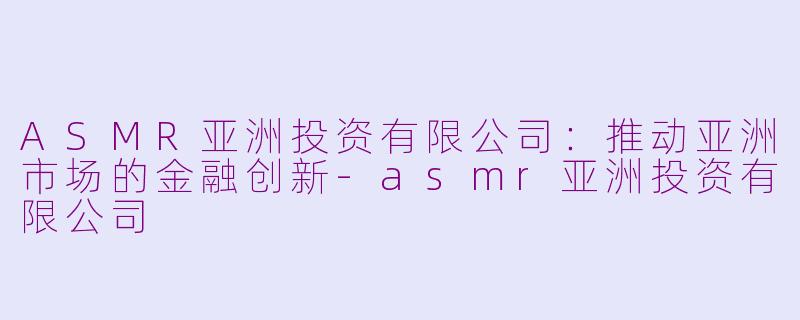 ASMR亚洲投资有限公司成立于近年来,旨在帮助投资者在快速变化的市场中找到更好的投资机会。作为一家专注于亚洲市场的金融机构,ASMR致力于通过深入的市场分析和前沿的投资策略,助力客户实现财富增值和风险管理。