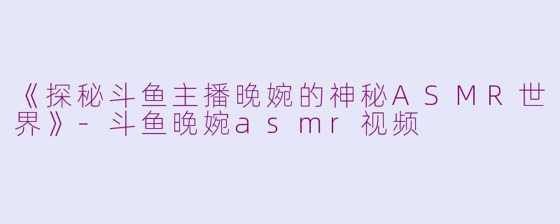 斗鱼平台上,有一位神秘的主播晚婉,以其独特的ASMR技巧赢得了众多粉丝的喜爱。在她的直播间里,观众们可以享受到各种令人心旷神怡的声音和画面,仿佛置身于一个充满魔力的世界中。