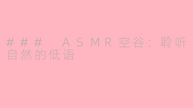 在喧嚣的都市生活中,越来越多的人开始向往宁静与放松。而ASMR(自发性知觉经络反应)作为一种新兴的放松方式,正好满足了这一需求。空谷的ASMR声音不仅仅是简单的耳边细语,它还包含了自然界的美妙音响:清晨的鸟鸣、微风拂过树叶的沙沙声、溪水轻轻流淌的音律,仿佛将人带入了一个远离尘嚣的世外桃源。