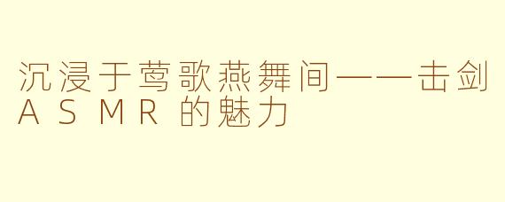 在这个喧嚣的时代,越来越多的人开始追寻内心的宁静与放松。而其中,一种新兴的放松方式——击剑ASMR,渐渐走入了人们的视野。击剑ASMR结合了击剑的优雅与细腻的声音,带给听众一种独特的听觉体验。