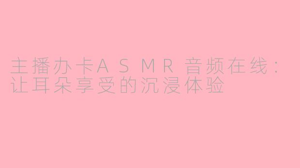 在互联网飞速发展的今天,ASMR(自发性知觉经络反应)已成为一种受欢迎的放松方式。主播们利用自己的声音和各种道具,创造出令人放松的音频内容,而“主播办卡ASMR音频在线”正是这种趋势的最新表现。