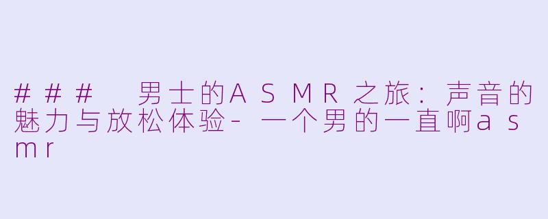 在现代生活中,压力无处不在,许多人都会寻找各种方式来放松自己。近几年,ASMR(自发性知觉经络反应)视频迅速走红,成为了缓解焦虑的一种新方法。而我认识的一个男士,就是在ASMR的世界中找到了平静和乐趣。