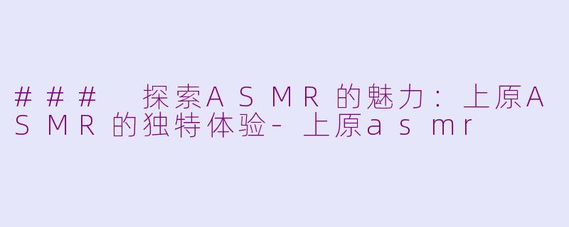 在近年来,ASMR(自发性知觉经络反应)现象逐渐走进了大众视野,其中上原ASMR尤为受到关注。上原ASMR不仅以其独特的声音世界吸引了大量粉丝,还通过各种音效营造出宁静、放松的氛围,有效缓解现代生活的压力。