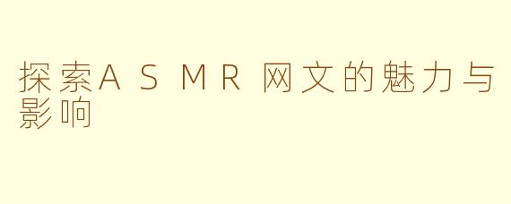 总之,ASMR网文不仅是一种新的阅读体验,更是一种心灵的寄托。它让我们在字里行间找到共鸣,带给我们安慰与力量。