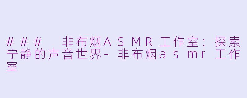 在快节奏的生活中,寻找内心的宁静变得愈发重要。非布烟ASMR工作室应运而生,致力于为听众提供一个放松和舒缓压力的声音空间。ASMR(自发性知觉经络反应)通过细腻的声音刺激,帮助人们释放紧张情绪,达到心理和生理的放松。