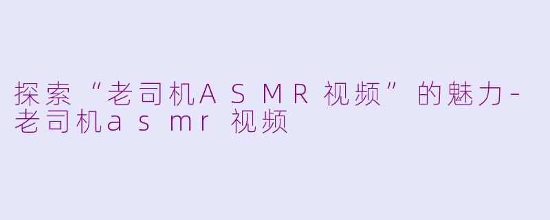 随着ASMR(自发性知觉经络反应)视频的流行,越来越多的内容创作者开始尝试不同主题。其中,“老司机ASMR视频”凭借其独特的风格和主题,成为了许多观众的新宠。
