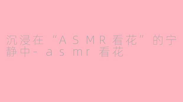 近年来,ASMR(自发性知觉经络反应)作为一种独特的放松体验,越来越受到欢迎。而“ASMR看花”则是这一现象中的一个新兴趋势。它通过视觉和听觉的结合,将人们的注意力引向大自然的美丽与宁静。