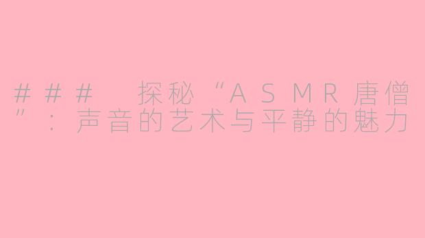 在当今互联网文化中,ASMR(自主感觉经络反应)以其独特的声音体验吸引了众多粉丝。而“ASMR唐僧”这一概念,则将传统人物与现代声音艺术相结合,形成了一种新颖的声音体验。