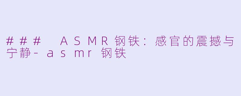 ASMR(自主感知经络反应)近年来在网络上引发了一股热潮,不少创作者以不同的声音和场景吸引观众。而“钢铁”这一主题,则为ASMR注入了一种独特的力量感与沉稳氛围。钢铁的敲击声、摩擦声和金属碰撞声,都能在心理上产生一种强烈的共鸣,令人感到放松与安心。