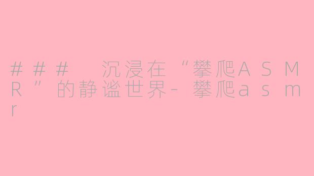 近年来,ASMR(自发性知觉经络反应)逐渐走入大众的视野,而“攀爬ASMR”作为其中一种新兴的子类别,以其独特的声音和视觉效果吸引了越来越多的爱好者。攀爬ASMR通常包含攀爬过程中的各种声音,如脚步声、石块摩擦声以及风声等,创造出一种身临其境的体验。