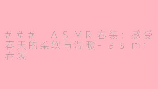 春装不仅仅是视觉上的美,更是心灵上的享受。在这个春暖花开的季节,让ASMR与春装一起,带你体验生活中的小确幸。