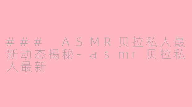 近年来,ASMR(自发性知觉高潮反应)逐渐成为了一种流行的放松和减压方式。在这个领域中,贝拉作为一位备受欢迎的创作者,凭借其独特的声音和创意内容吸引了大量粉丝。最近,贝拉发布了一系列最新的视频,内容涵盖从耳边低语到各种细腻声音的模拟,旨在帮助观众更好地放松和入眠。