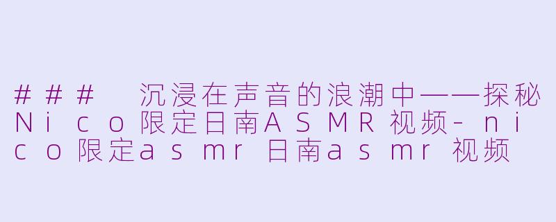 ASMR(自发性知觉经络反应)近年来席卷全球,成为不少人放松身心的选择。在众多ASMR创作者中,Nico的限定日南ASMR视频尤其引人注目。日南这个角色通过细腻的声音和独特的氛围,将观众带入一个宁静而舒适的世界。