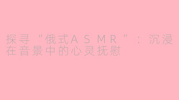 近年来,ASMR(自主感觉经络反应)在全球范围内受到广泛欢迎。而“俄式ASMR”则以其独特的魅力和文化背景,吸引了越来越多的爱好者。俄式ASMR通常融合了俄罗斯传统音效,如轻声细语的讲述、自然界的声音和各种意想不到的音响效果。